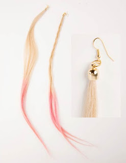 E eis que surge mais uma invenção louca desse mundo...Pois é, a grife Bijules NYC criou um brinco feito de cabelo. As mechas são tingidas de rosa da metade até as pontas, e cada par vem com uma caixinha e uma escova para pentear.