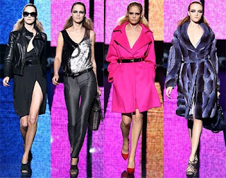 Com as brasileiras Raquel Zimmermann, Isabeli Fontana e Bruna Tenório, a Versace apresentou uma coleção basica, e super colorida. Na passarela, vestidos marcados com cinto fino, casacos de pele e os longos super sensuais que são a 'marca' da grife.