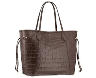 Tá. É uma Louis Vuitton com pele de cordeiro dentro e couro de jacaré por fora: Puro luxo. Mas acho que exageraram um pouco nesse novo lançamento, a Neverfull MM Exotic custa nada menos do que US$ 32.300! As bolsas da Louis geralmente custam mais que US$ 1.000 mas acho que US$ 32.300 chega a ser meio ridiculo.